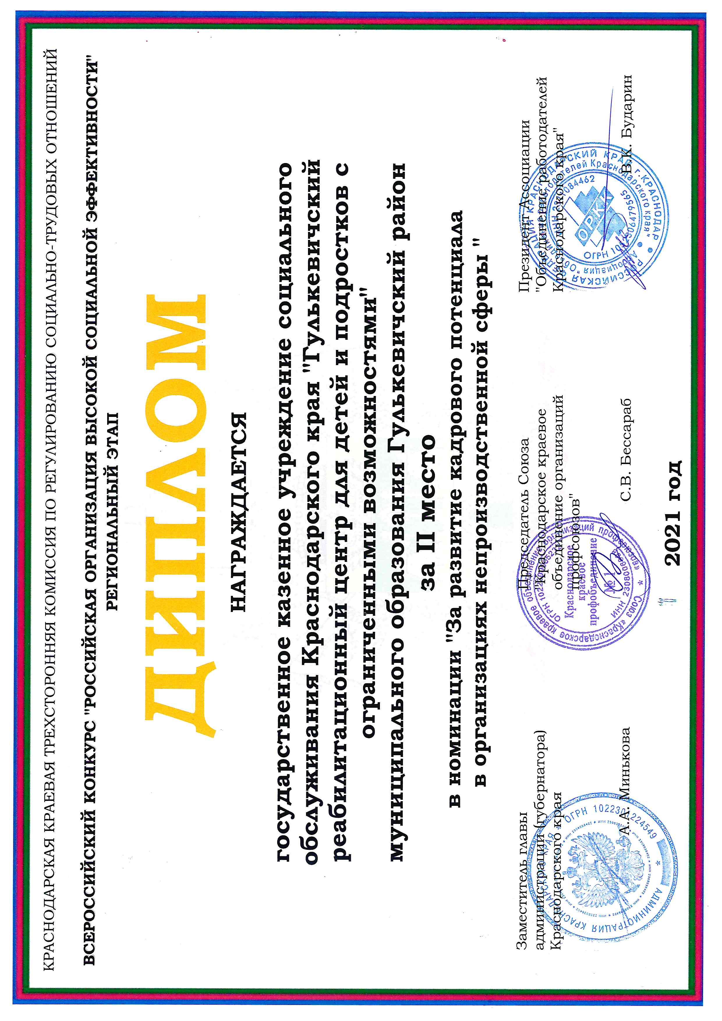 Государственное казённое учреждение социального обслуживания Краснодарского края "Гулькевичский реабилитационный центр для детей и подростков с ограниченными возможностями"