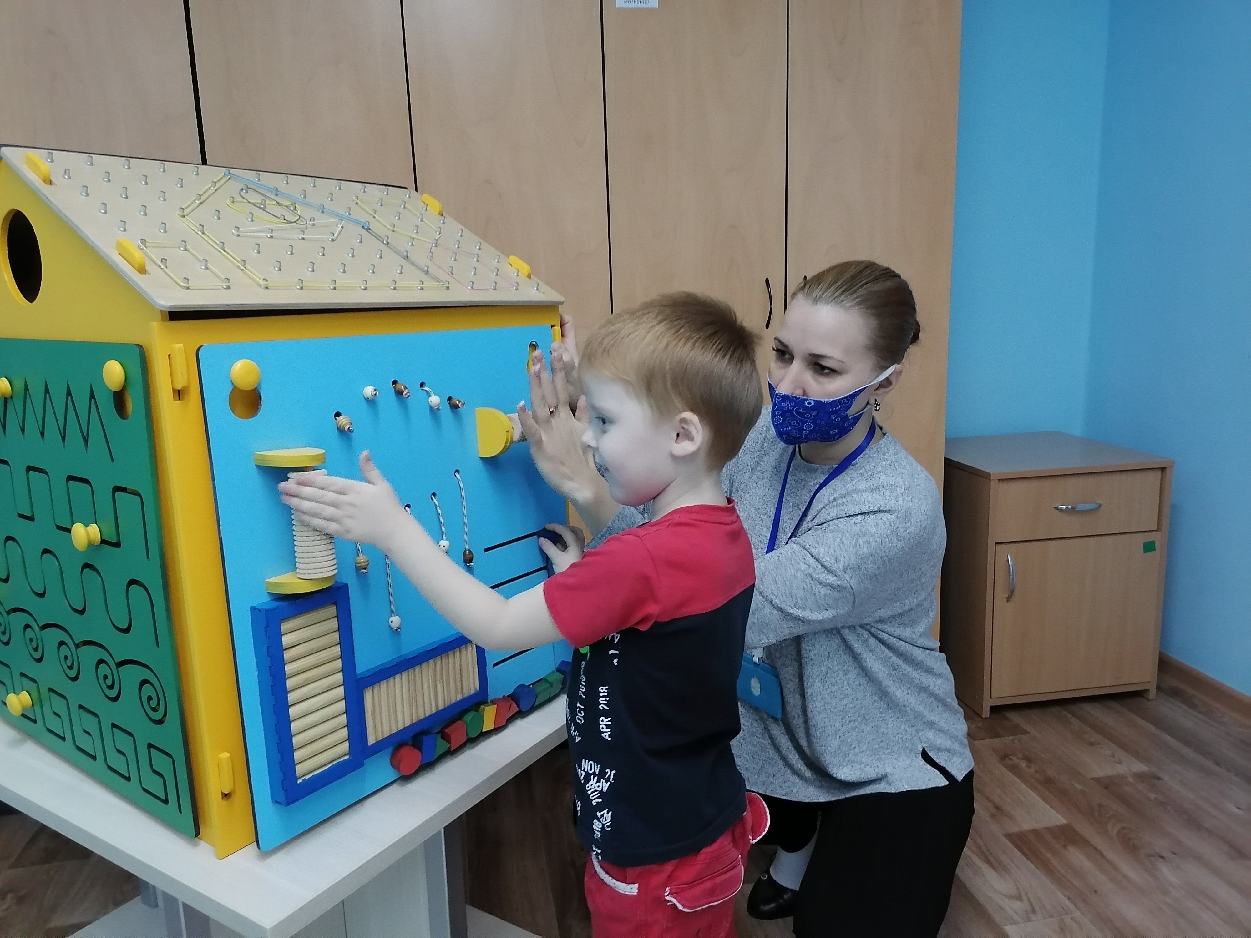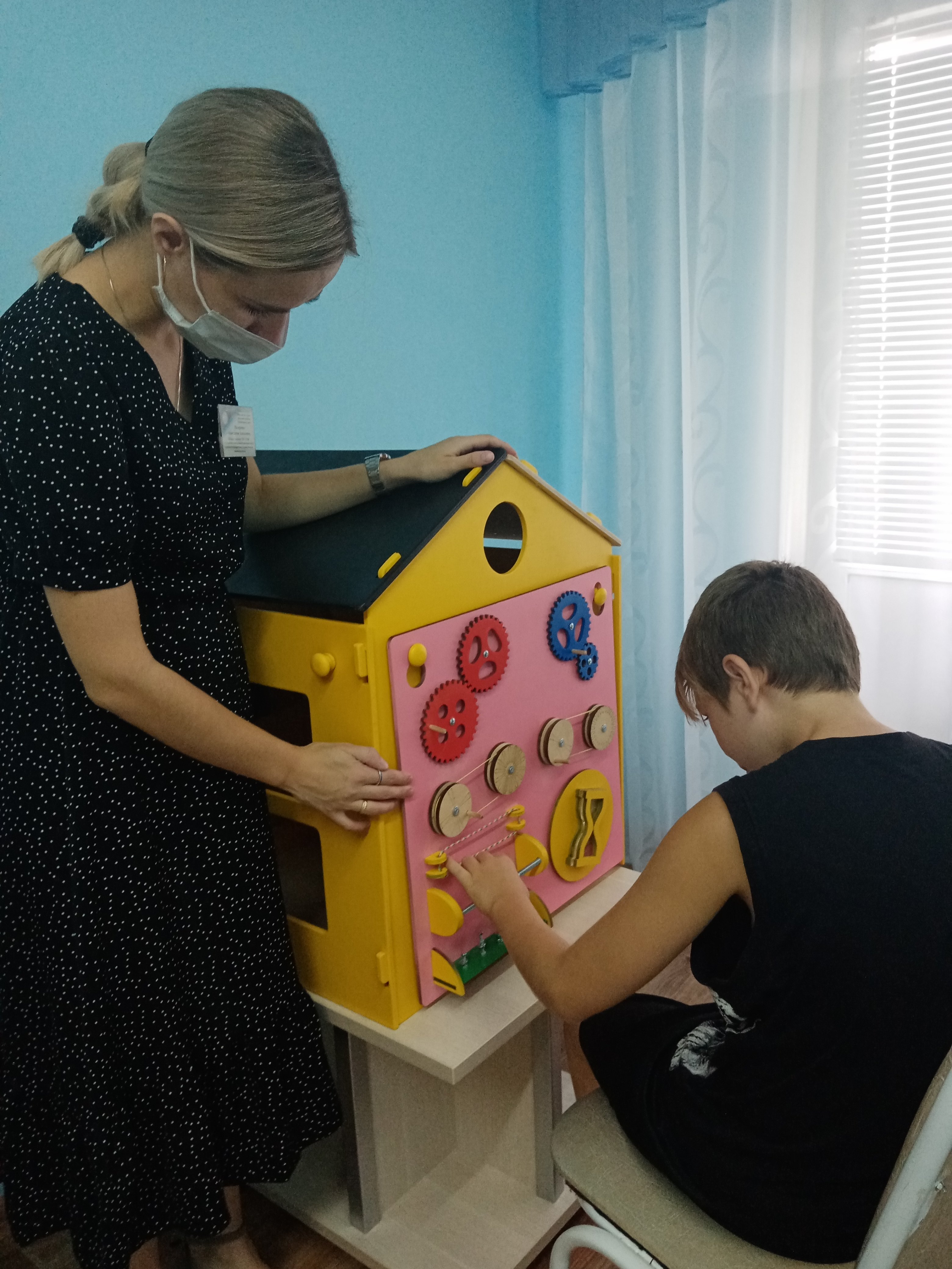 В 2021 году в ГКУ СО КК «Гулькевичский реабилитационный центр» в рамках государственной программы «Доступная среда» было приобретено новое оборудование для проведения коррекционных занятий с воспитанниками: интерактивный стол логопеда, интерактивный стол, интерактивный пол, бизиборд, сенсорно-динамический зал «Дом Совы», игровой набор «Дары Фребеля», жилой модуль «Кухня». Интерактивный стол логопеда успешно применяется учителями-логопедами в реабилитационном процессе при развитии у детей: связной речи, звукопроизношения, мелкой и общей моторики, фонематического слуха, речевого дыхания, развитие неречевого слуха, речевой активности, обогащение словарного запаса, грамматического строя речи, слогового анализа. Так, в 2021 году учителями -логопедами было проведено 26 занятий с 26 воспитанниками, значительный эффект наблюдался у 26 детей – 100%. В январе 2022 года было проведено 77 занятий с 77 воспитанниками – значительный эффект – 77 человек -100%. Использование в работе специалистами интерактивного стола логопеда способствует развитию желания у детей исследовать и изучать, найти информацию, позволяющую решить ту или иную задачу, поставленную педагогом. Сенсорно-динамический зал «Дом Совы» способствует развитию у детей сенсорно-моторной интеграции, помогает им научиться использовать свои сенсорные системы для ежедневного взаимодействия, привыкнуть к окружающим предметам и явлениям. В 2021 году в сенсорно-динамическом зале занималось 45 воспитанников. В результате занятий, направленных на ощущение себя в пространстве, баланс, координацию, релаксационные упражнения, коммуникативные упражнения с использованием предметов, достигнуты следующие результаты: значительный эффект – 43 человека – 97%, незначительный эффект – 2 человека - 3%. В январе 2022 года в сенсорно-динамическом зале занималось 12 воспитанников. Значительный эффект- 11 человек – 99%, незначительный эффект - 1человек -1%. С целью формирования знаний, умений и навыков, направленных на социальную адаптацию детей-инвалидов в быту, приобретен жилой модуль «Кухня». Воспитателями разработана дополнительная общеобразовательная программа по обучению детей социально-бытовым навыкам в условиях жилого модуля «Наша кухня». Задача педагогов и воспитателей познакомить и помочь детям-инвалидам включиться в социальные процессы домашнего быта. Дети с большим удовольствием посещают бытовую комнату, ведь здесь все продумано до мелочей: карточки-подсказки «Пекс», удобные подходы и подъезды к варочной панели, кухонной мойке, шкафам, обеденному столу. Все теоретические знания закрепляются на практике: дети знакомятся с кухонным инвентарем и оборудованием, учатся самостоятельности, аккуратности, умению выполнять несложные трудовые действия, пользуясь технологическими инструкциями, памятками по соблюдению правил безопасной работы на кухне. Самое интересное для ребят — это приготовление несложных блюд: варка каши, яиц, заваривание чая с использованием технологических карт и соблюдением техники безопасности при работе с варочной плитой. В результате реализации коррекционных мероприятий у детей достигнут значительный эффект в обучении социально-бытовым навыкам: научились сервировать стол и наводить порядок, закрепили правила безопасного обращения с бытовой техникой, научились сам